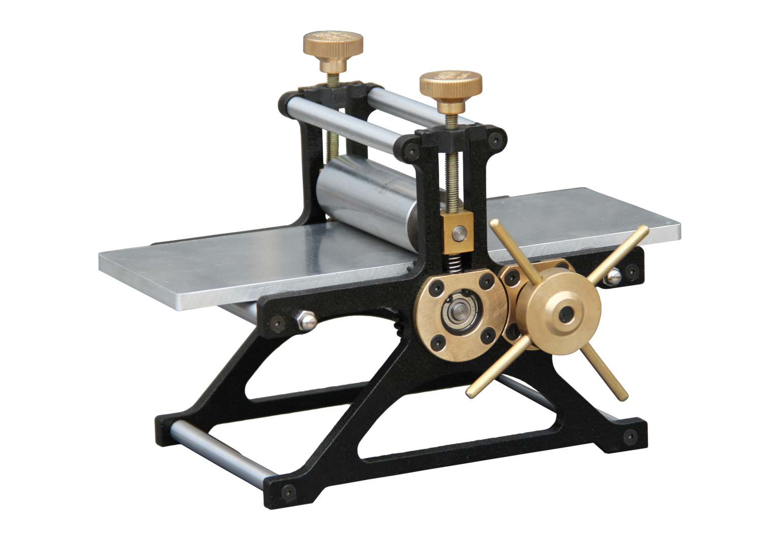 YJ-11 版畫機 采用鋁合金、不銹鋼和銅材制造,是一款專業型的桌上機型。 有壓力微調標識,適用于凹版(銅版、雙色版)和凸版(木版、銅鋅版)等版畫印制。 整機重量符合人體工程,方便移動攜帶。 版床尺寸: 600×330mm 最大進紙幅寬:330mm 版床厚度:10mm 滾筒最大直徑:100mm 機器重量:26kg 外形尺寸:600×480×500mm |
