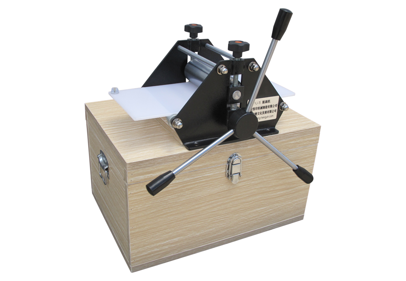 YJ-07 版畫機 用于銅版、木版、凸版和雙色板等印制高品質版畫的機型。 版面有效尺寸1000×600mm,可以完全滿足對張紙幅面版畫印制需求。 整體式墻板采用加工中心加工,滾筒經精密研磨和鍍鉻,高強度鋁合金版床,機體表面靜電噴涂處理。壓力調整標尺指示。 以人為本的設計理念,機器尺寸上可方便進入電梯和普通居室門,全機裝配有高承載萬向腳輪,可方便推動、調節平衡及固定。機器箱體可以放置工具,器材等。 |