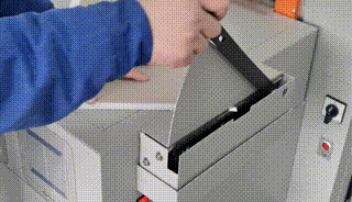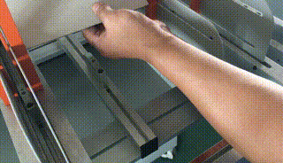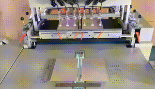 在更換不同厚度紙板或有需調節紙板時,按下按鈕后送紙板機構會吸起紙板運行前部位置停止,根據紙板規格厚度調節紙板推規至合適的位置,再次按下按鈕送紙板機構回到起始位置。 |