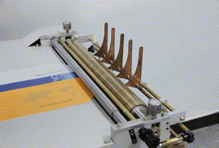 封面裁角裝置,對不同厚度的紙板無需調節即可裁切出符合規范標準的封面包角。 |
